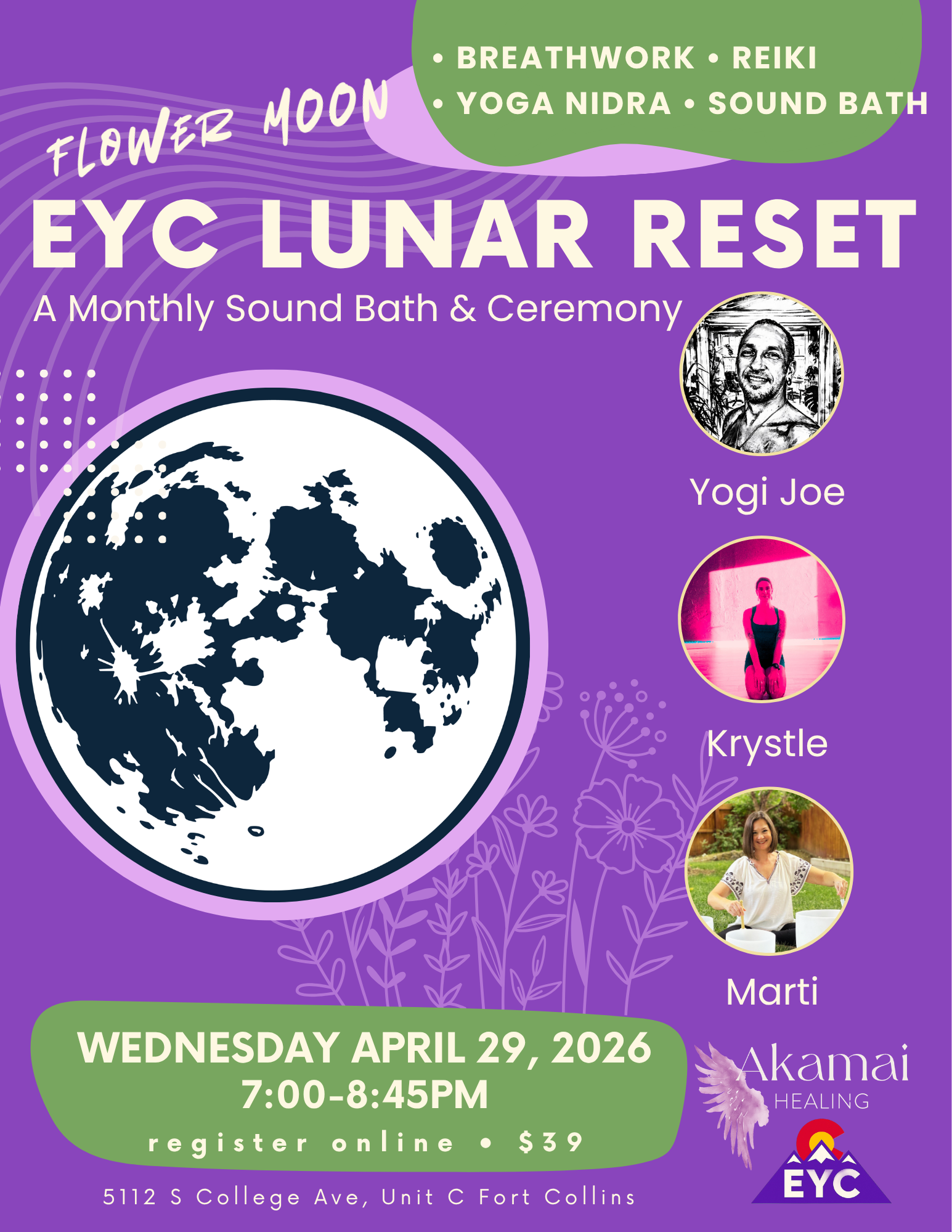 Wednesday, April 29, 7-8:45pm at Elevate Yoga Collective, Fort Collins, Colorado